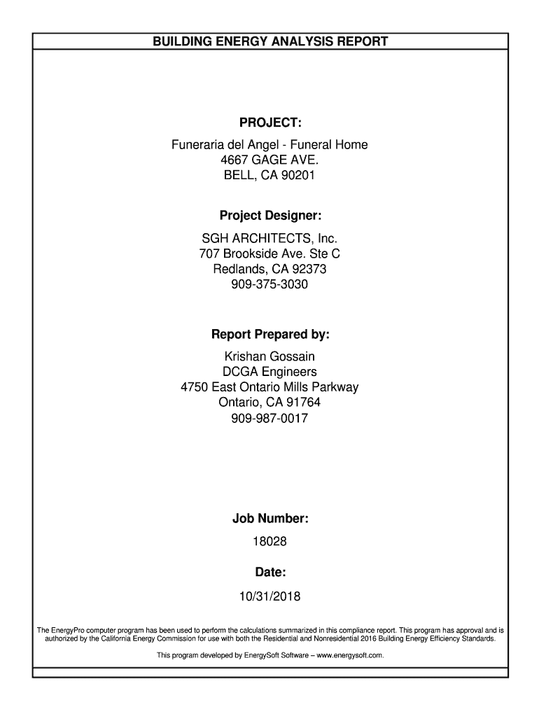 BUILDING ENERGY ANALYSIS REPORTPROJECT: Funerary Del Angel Funeral Home 4667 GAGE AVE. BELL, CA 90201Project Designer: SGH ARCHITECTS, Inc. 707 Brookside Ave. Ste C Redlands, CA 92373 9093753030Report