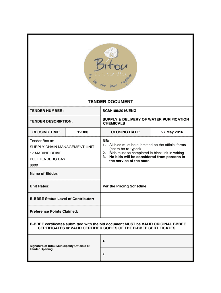 Fill out your tender document - bitou online with pdfFiller!