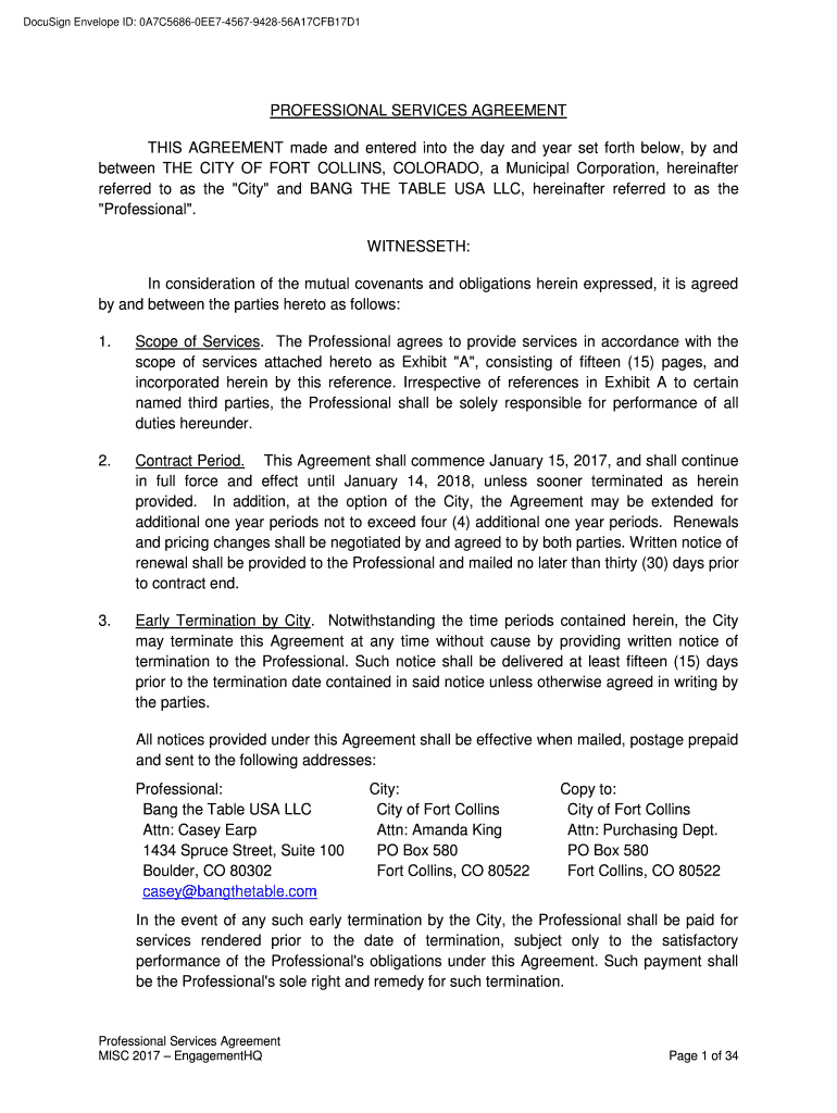 DocuSign Envelope ID: 0A7C56860EE74567942856A17CFB17D1PROFESSIONAL SERVICES AGREEMENT THIS AGREEMENT made and entered into the day and year set forth below, by and between THE CITY OF FORT COLLINS,