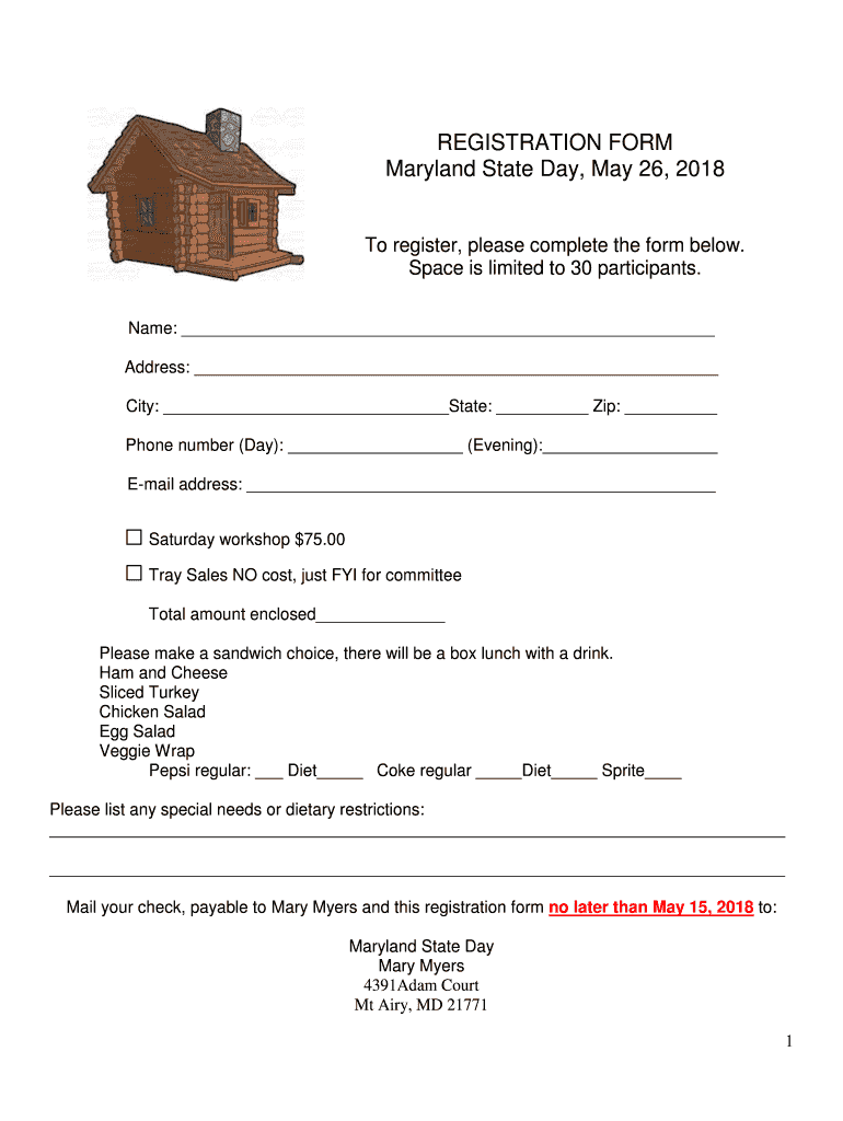 Get the free REGISTRATION FORM Maryland State Day, May 26, 2018