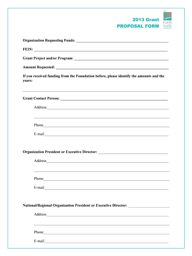 Get the free 2013 Grant PROPOSAL FORM - everglades 3cdn