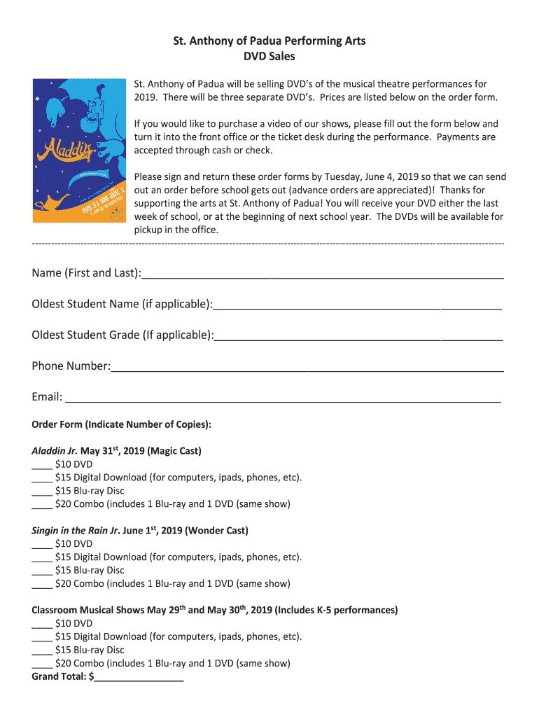 St. Anthony of Padua will be selling DVDs of the musical theater performances for