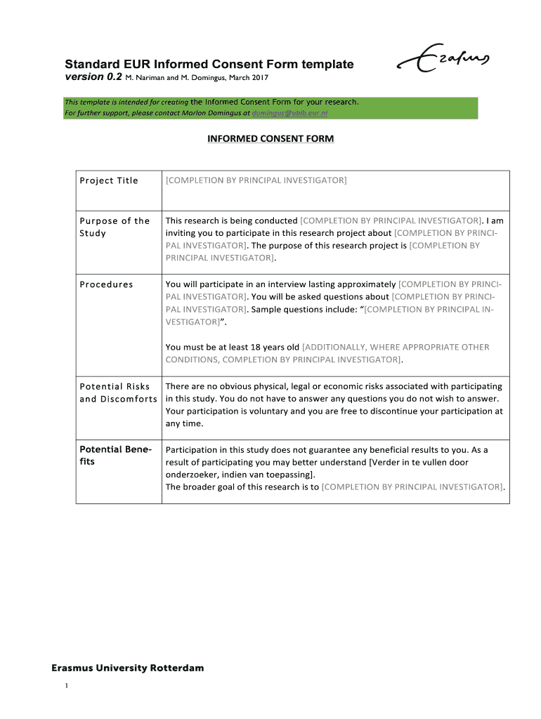 Standard EUR Informed Consent Form template version 0.2M. Norman and M. Doming us, March 2017Thistemplateisintendedforcreatingthe Informed Consent Form for your research. Forfurthersupport, pleasecontactMarlonDomingusatdomingus