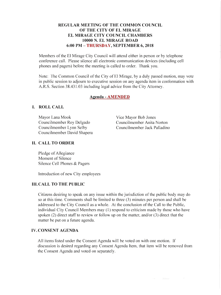 OF THE CITY OF EL MIRAGE CITY COUNCIL CHAMBERS
