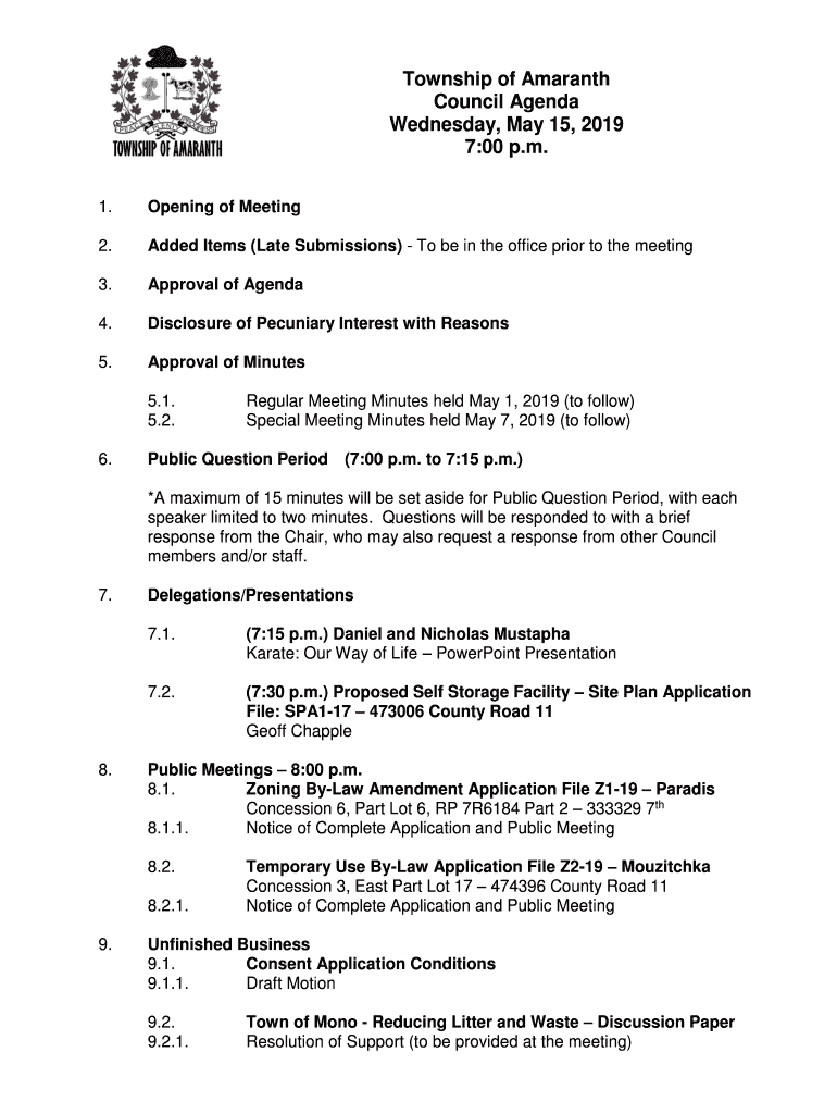 Get the free Township of Amaranth Council Agenda Wednesday, May 15 ...