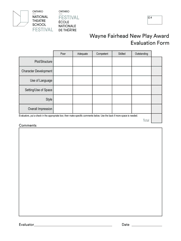 Get the free Wayne Fairhead New Play Award Evaluation Form