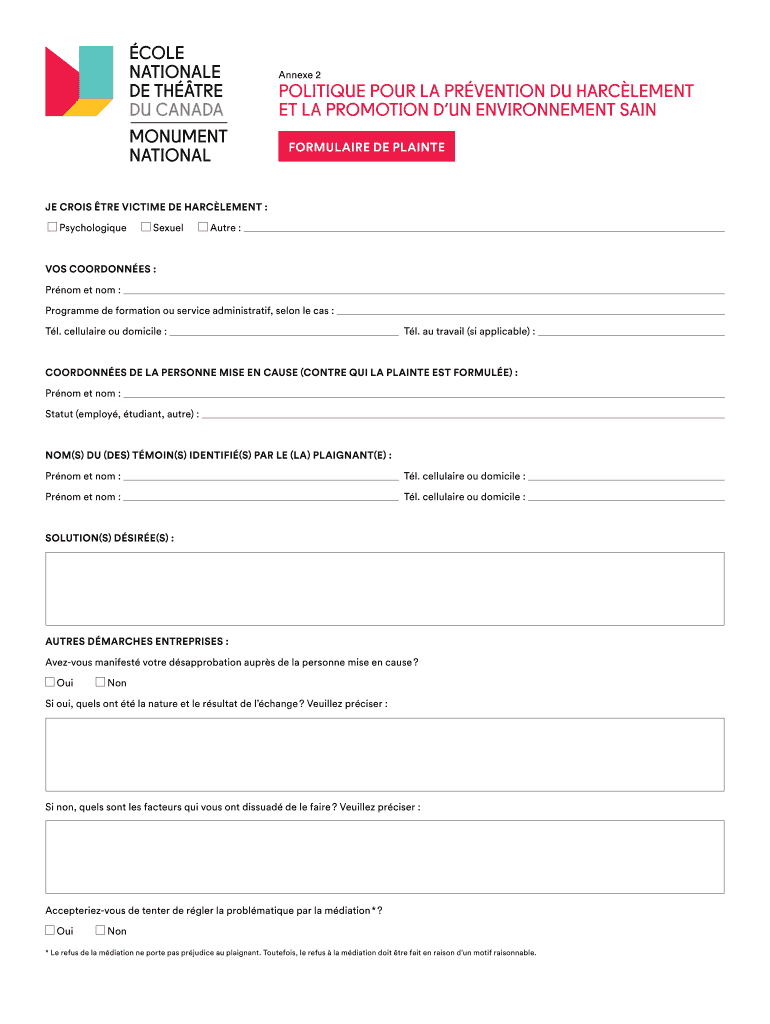 Obtenir le gratuit Politique pour la prvention du harclement et la ...
