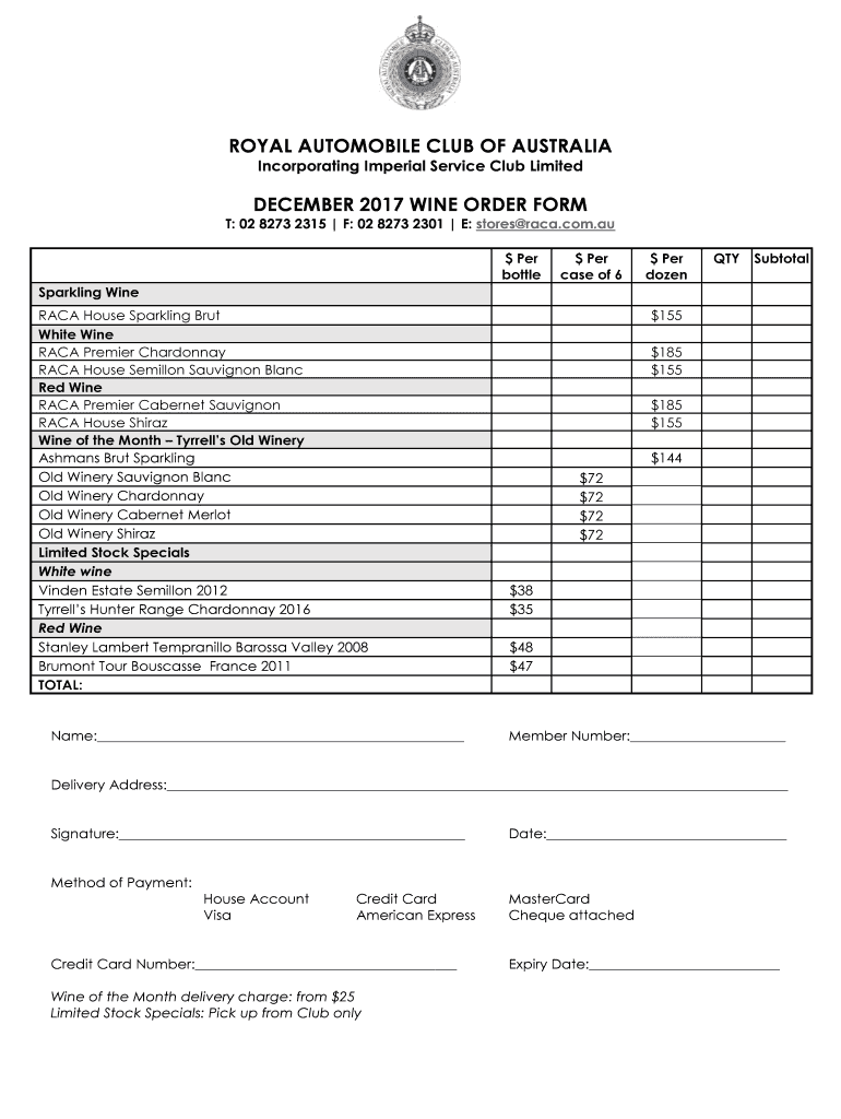 Get the free royal automobile club of australia december 2017 wine order ...