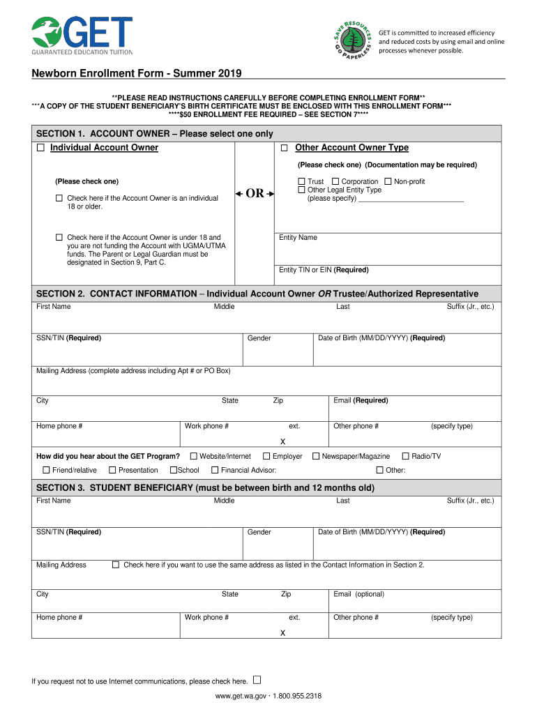 GET is committed to increased efficiency and reduced costs by using email and online processes whenever possible. Newborn Enrollment Form Summer 2019 **PLEASE READ INSTRUCTIONS CAREFULLY BEFORE COMPLETING