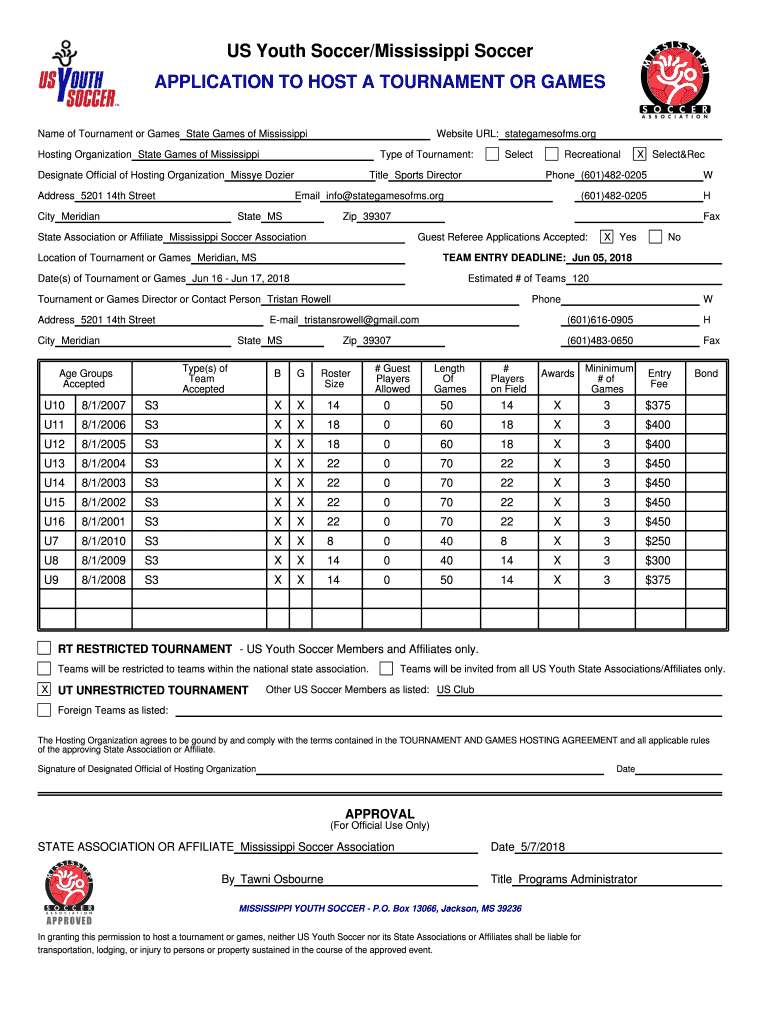 Get the free Name of Tournament or Games State Games of Mississippi