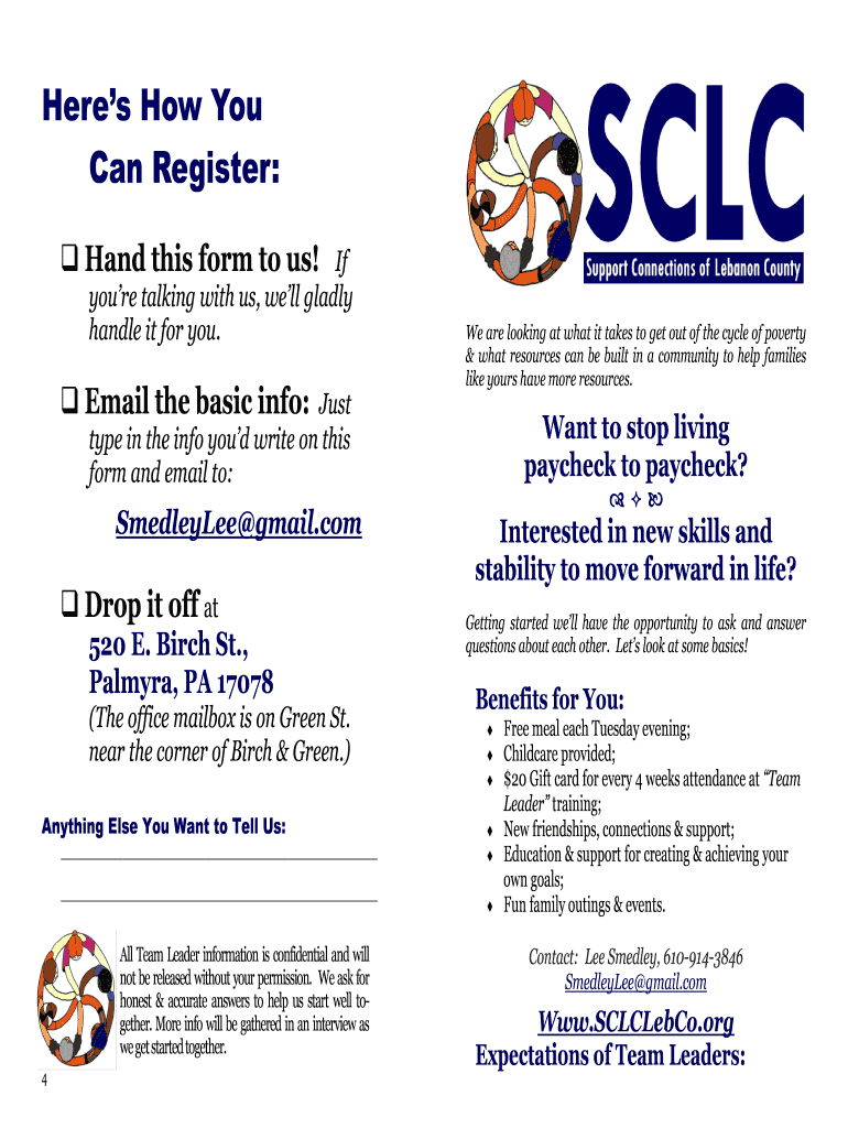 Here's How You Can Register: Hand this form to us! If you're talking with us, well gladly handle it for you. Email the basic info:Just type in the info you'd write on this form and email to:Smedley