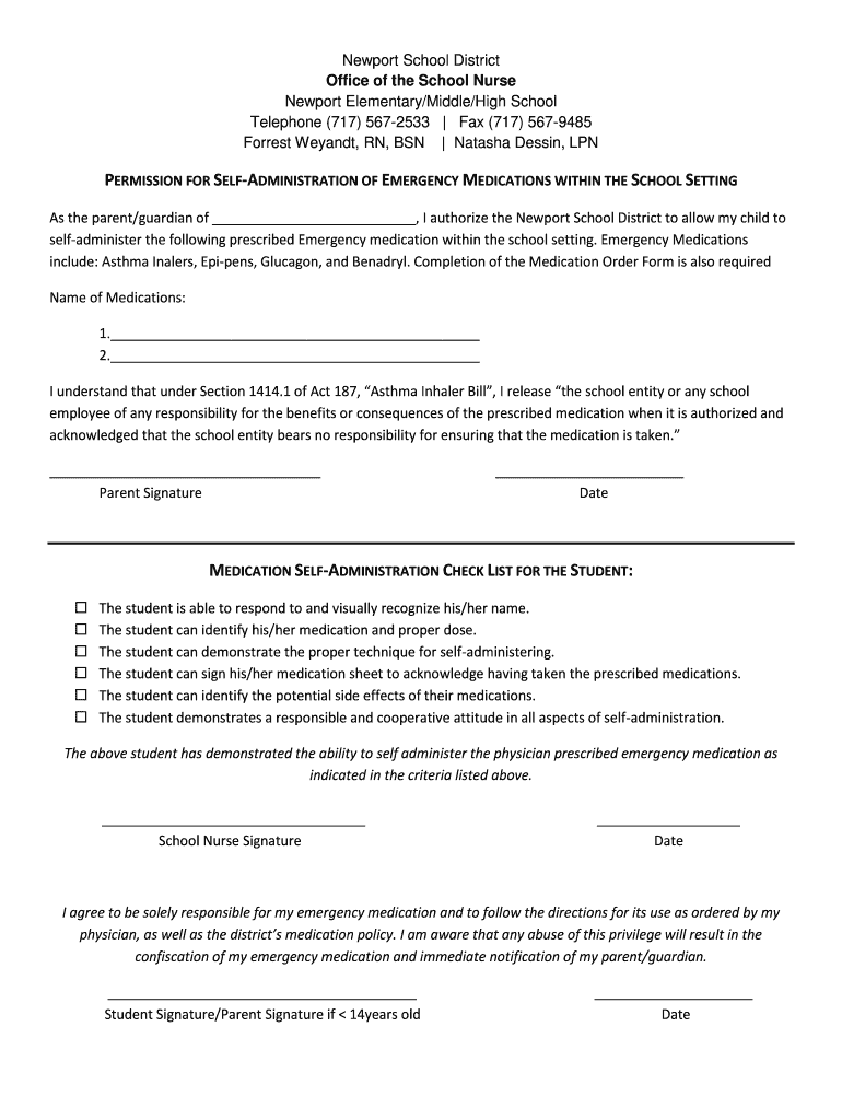 Get the free PERMISSION FOR SELF-ADMINISTRATION OF EMERGENCY ...
