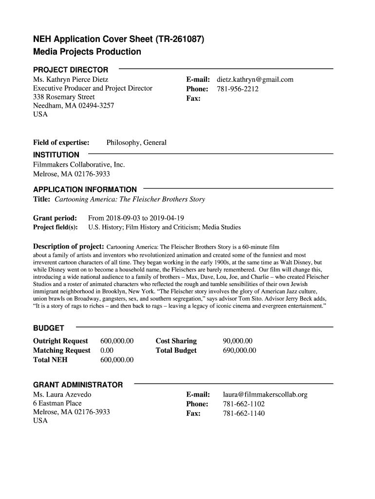 NEH Application Cover Sheet (TR261087)