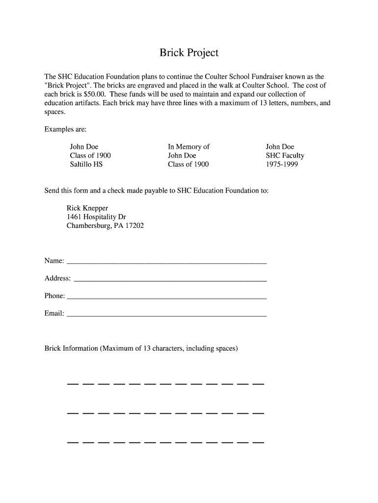 Fill out your brick project - shcsdorg online with pdfFiller!