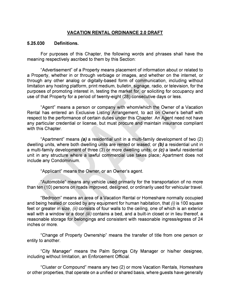 VACATION RENTAL ORDINANCE 2.0 DRAFT