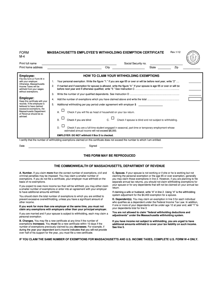 M4MASSACHUSETTS EMPLOYEES WITHHOLDING EXEMPTION CERTIFICATEPrint full name