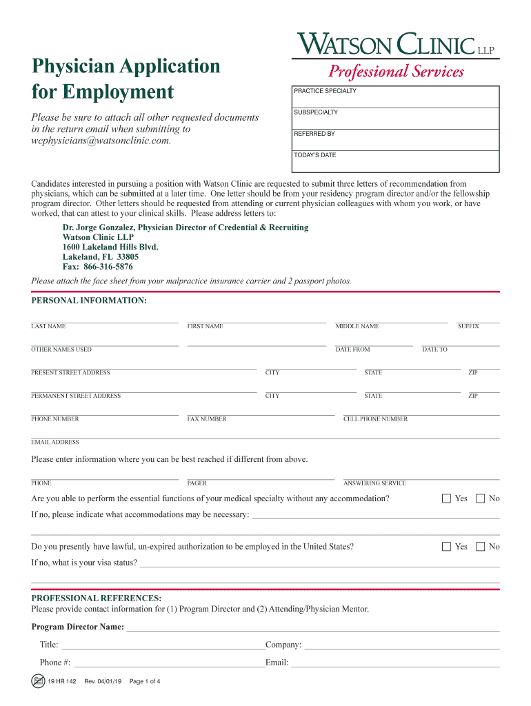 Information such as personal details, educational background, work experience, certifications, licenses, references, and any other relevant information must be reported on physician application professional services.