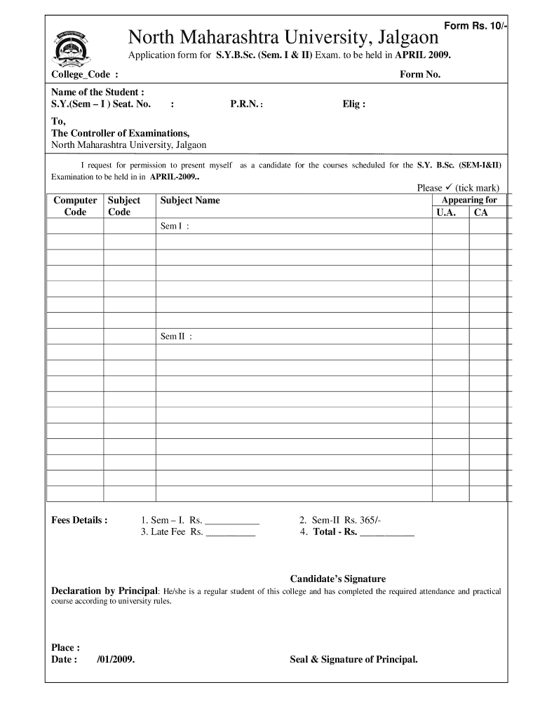 Get the free S.Y.B.Sc. Exam Application Form