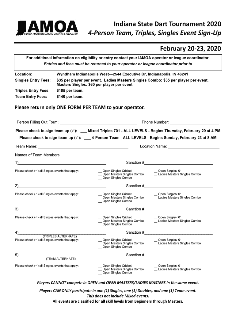 Get the free Indiana State Pool Tournament 2020 Team Event Sign-Up Form