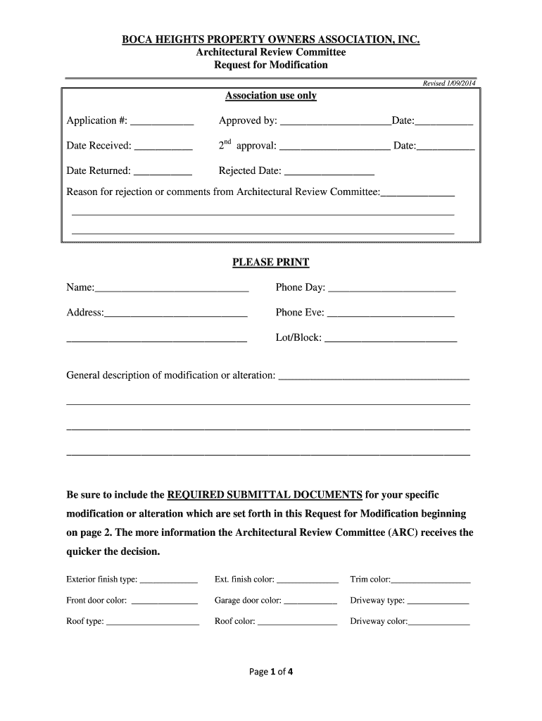 COCA HEIGHTS PROPERTY OWNERS ASSOCIATION, INC. Architectural Review Committee Request for Modification Revised 1/09/2014Association use only Application #: Approved by: Date: Date Received: 2nd approval: