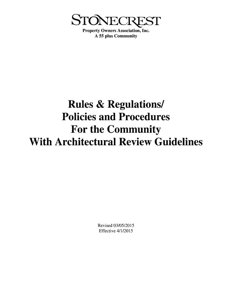 Property Owners Association, Inc. A 55 plus CommunityRules & Regulations/ Policies and Procedures For the Community With Architectural Review GuidelinesRevised 03/05/2015 Effective 4/1/201511050 SE