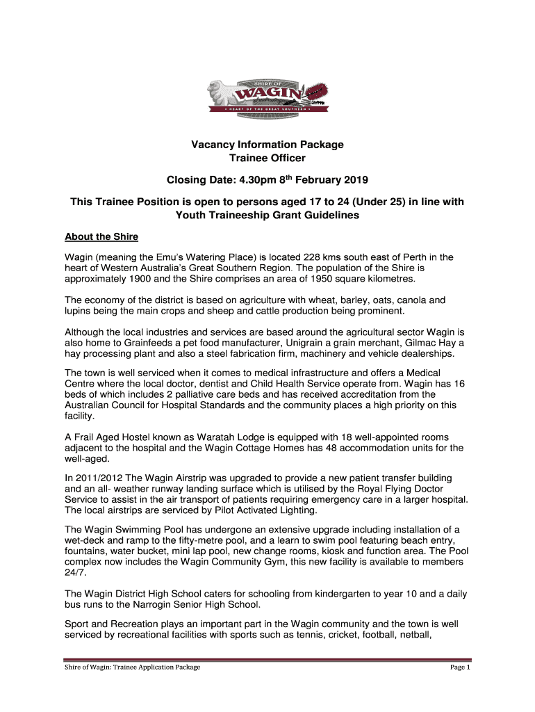 Get the free Vacancy Information Package Trainee Officer Closing Date ...