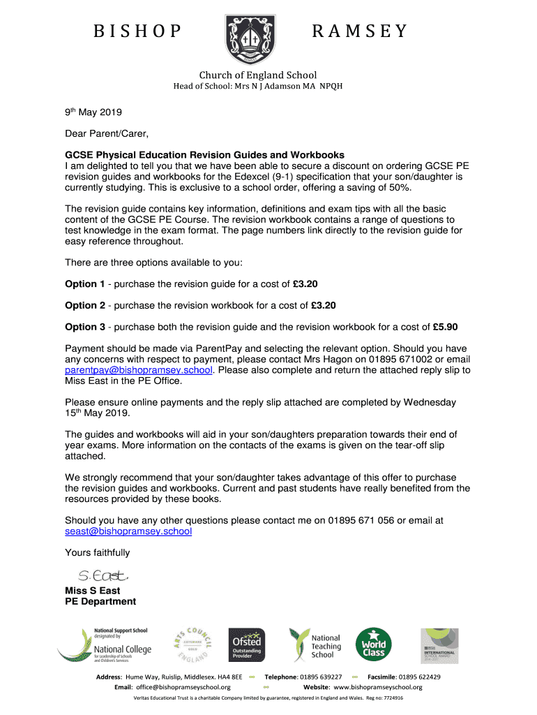 Church of England School Head of School: Mrs N J Adamson MA NPQH9th May 2019