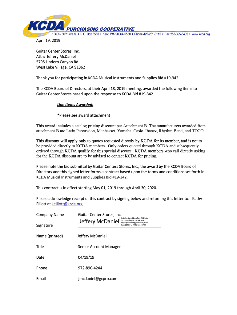 PURCHASING COOPERATIVE18639 80TH Ave S. w P.O. Box 5550 w Kent, WA 980645550 w Phone 4252518115 w Fax 2533955402 w www.kcda.orgApril 19, 2019