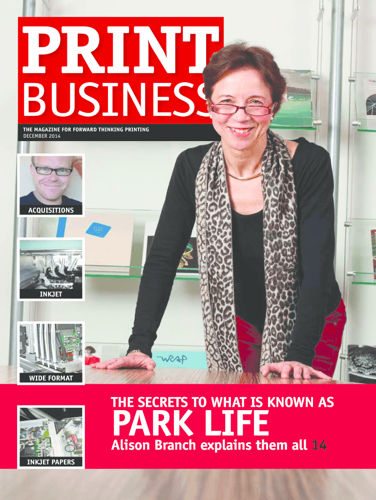 THE MAGAZINE FOR FORWARD THINKING PRINTING DECEMBER 2014ACQUISITIONSINKJETWIDE FORMATIVE SECRETS TO WHAT IS KNOWN SPARK LIFE Alison Branch explains them all 14 INLET PAPERSPrint Business is published