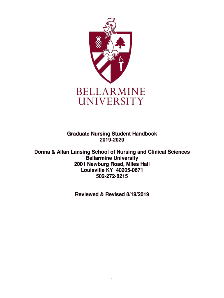 Graduate Nursing Student Handbook 20192020 Donna & Allan Lansing School of Nursing and Clinical Sciences Melamine University 2001 Newburgh Road, Miles Hall Louisville KY 402050671 5022728215Reviewed