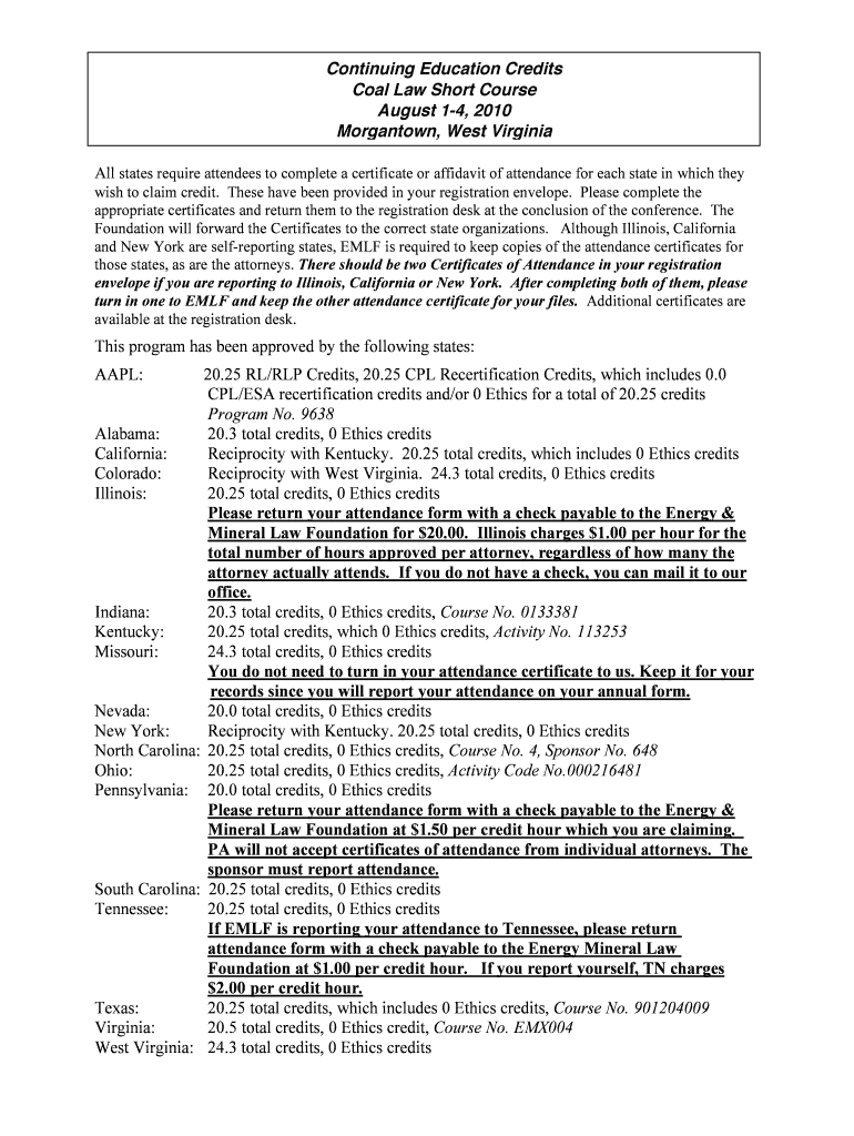 Morgantown, West Virginia states require attendees to complete a certificate or affidavit of attendance for each state in which