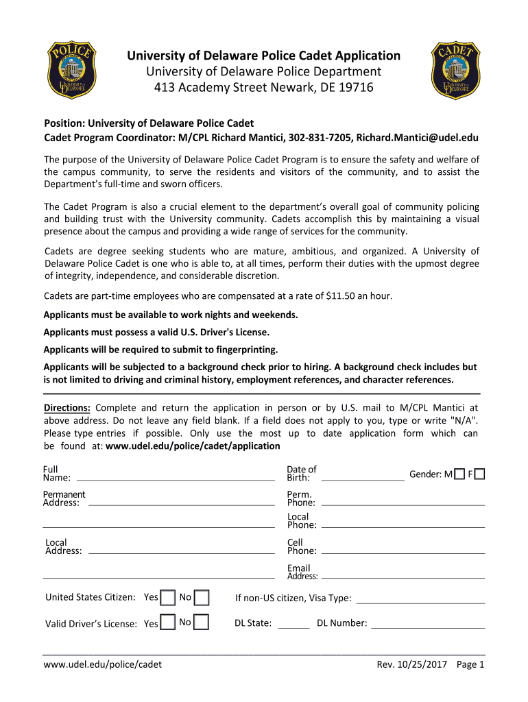 Get the free Apply to be UD Police Cadet - WordPress at UD - University of ...