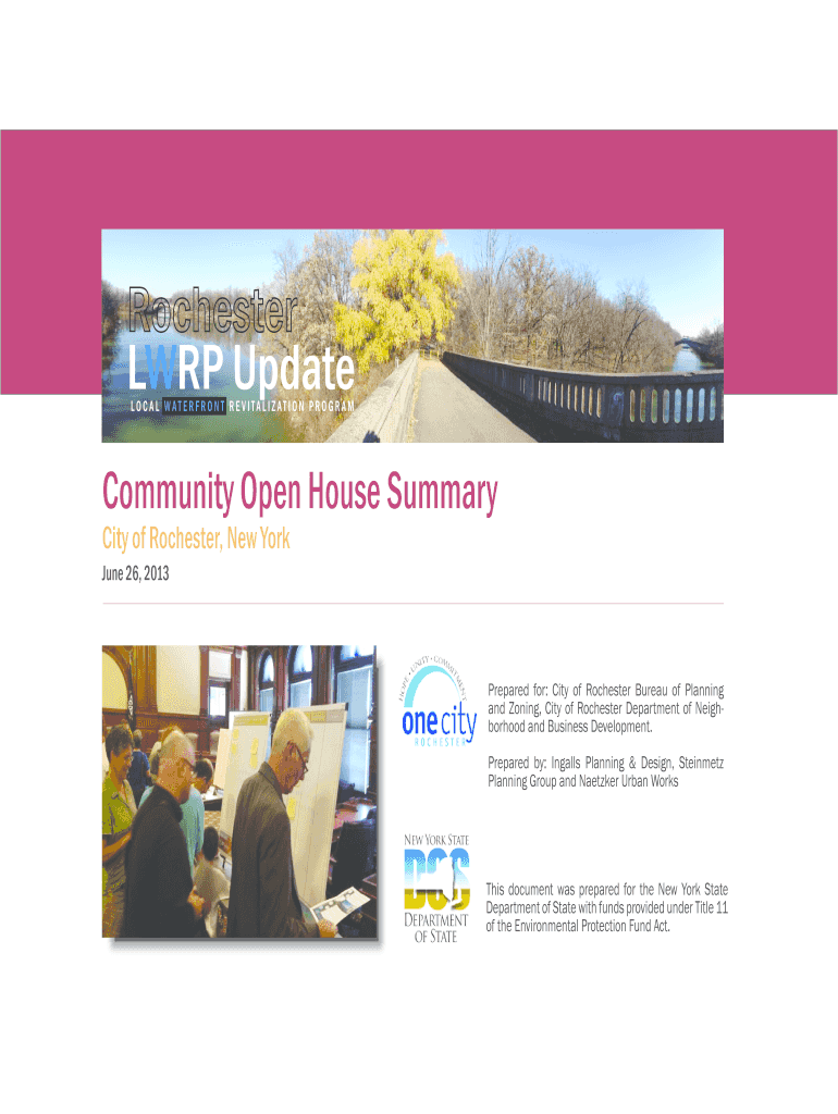 LOCAL WATERFRONT REVITALIZATION PROGRAMCommunity Open House Summary City of Rochester, New York June 26, 2013Prepared for: City of Rochester Bureau of Planning and Zoning, City of Rochester Department