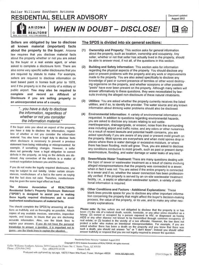Document updatedRESIDENTIAL SELLER ADVISORY