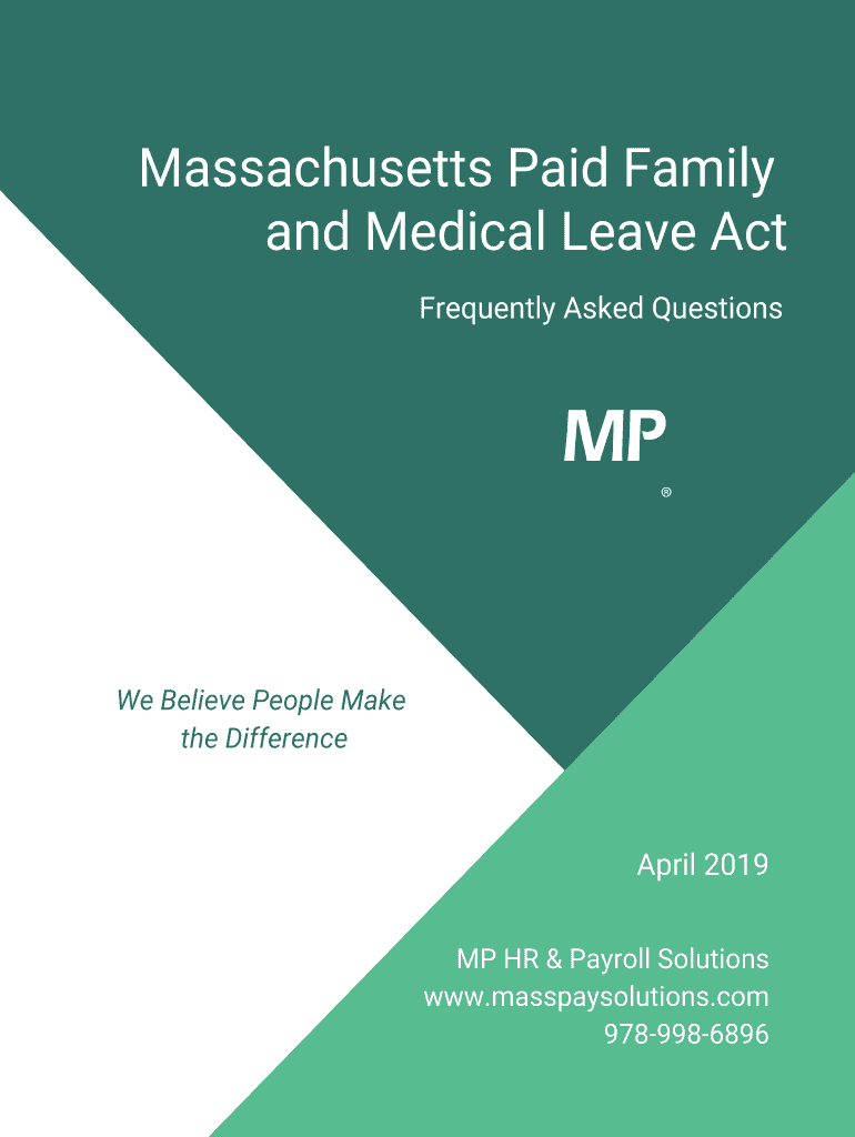 Massachusetts Paid Family and Medical Leave Act Frequently Asked Questions Believe People Make the Difference April 2019 MP HR & Payroll Solutions www.masspaysolutions.com 9789986896Contents PF MLA