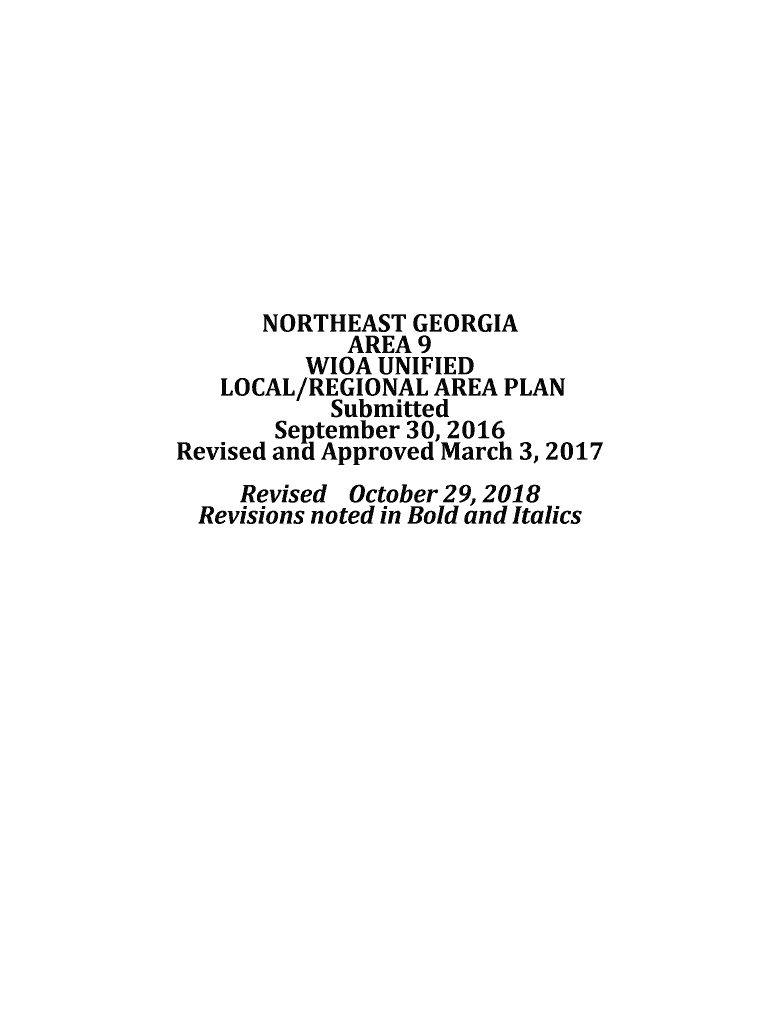 NORTHEAST×GEORGIANA×9WIOA×UNIFIEDLOCAL/REGIONAL×AREA×PLANSubmittedSeptember×30, 2016Revised×and×Approved×March×3, 2017RevisedOctober×29, 2018Revisions×noted×in Bold×and×ItalicsUpdated10.29.18NortheastGeorgiaWorkforceDevelopmentPlan2016Table