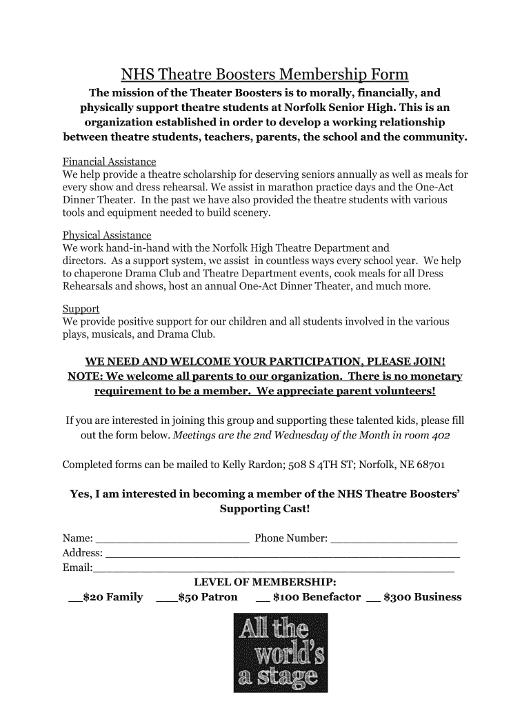 NHS Theater Boosters Membership Form