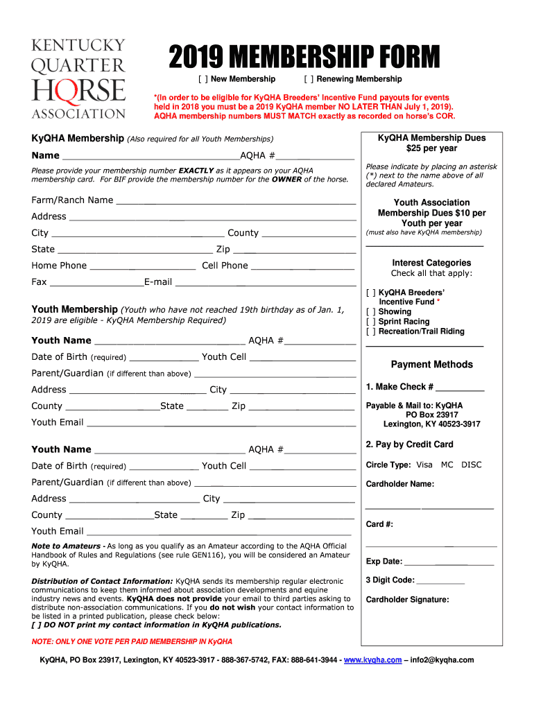 2019 MEMBERSHIP FORM New Membership Renewing Membership*(In order to be eligible for YMHA Breeders Incentive Fund payouts for events held in 2018 you must be a 2019 YMHA member NO LATER THAN July