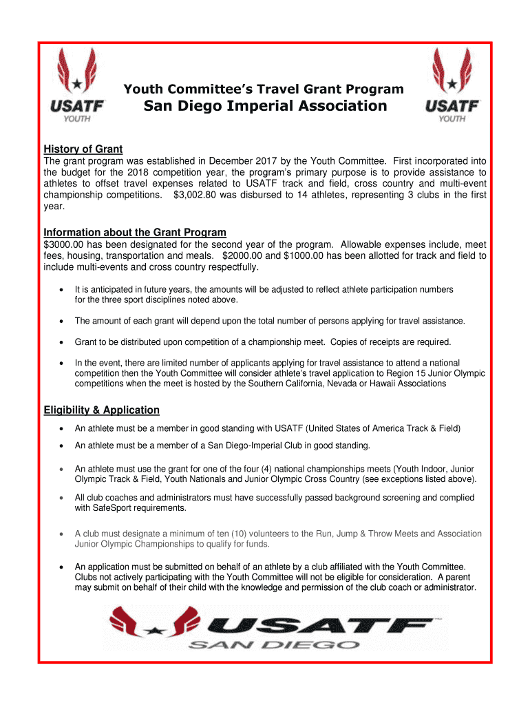 Youth Committees Travel Grant Program San Diego Imperial Association