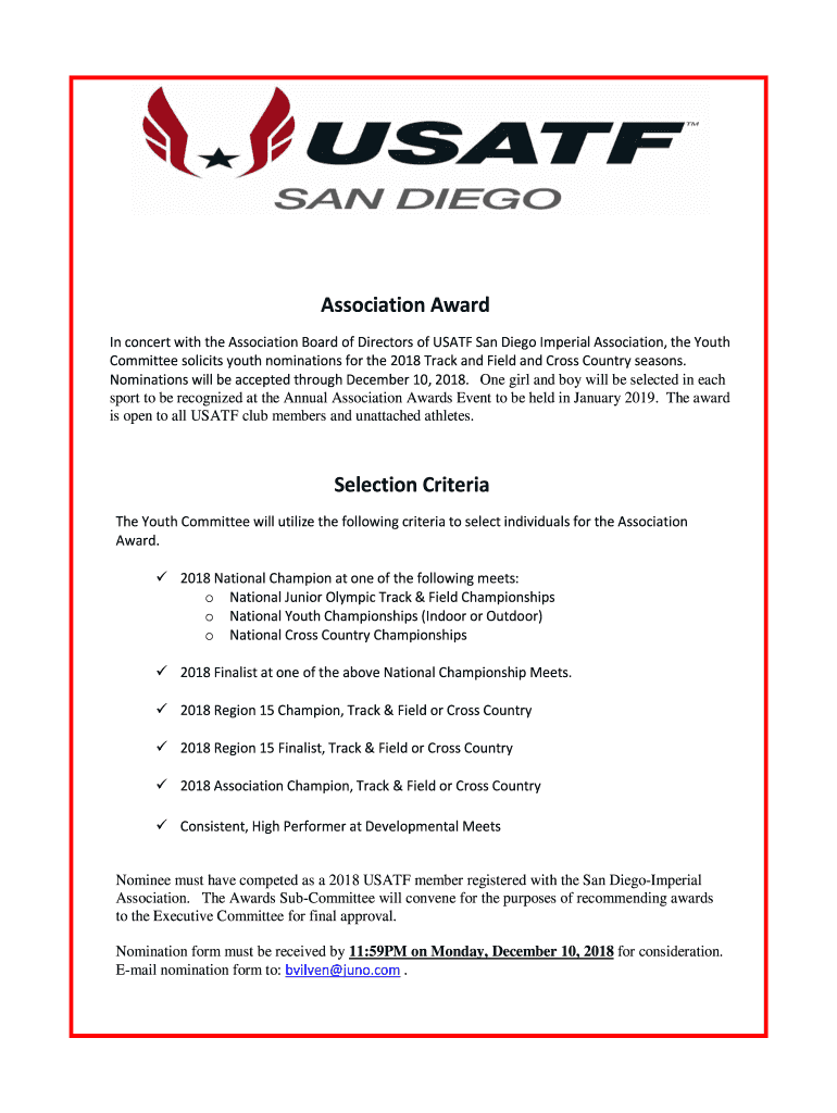 Committee solicits youth nominations for the 2018 Track and Field and Cross Country