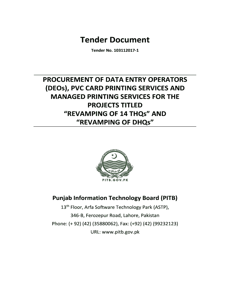 Tender No. 1031120171PROCUREMENT OF DATA ENTRY OPERATORS