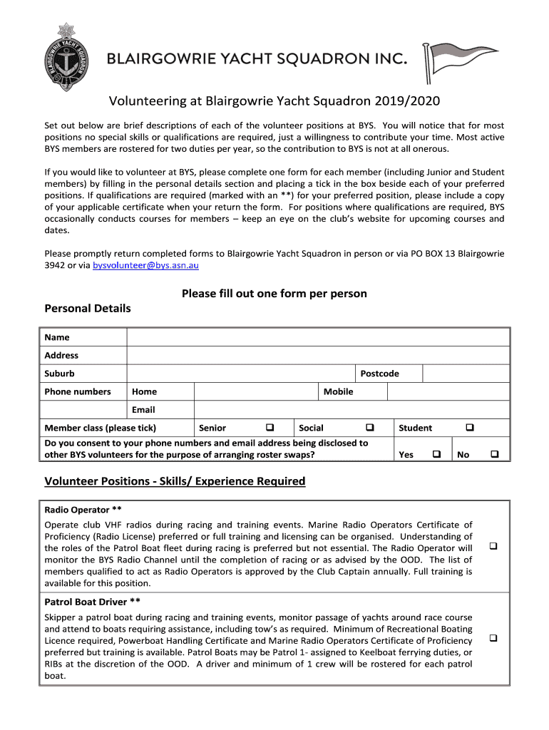 Set out below are brief descriptions of each of the volunteer positions at BYS. You will notice that for most