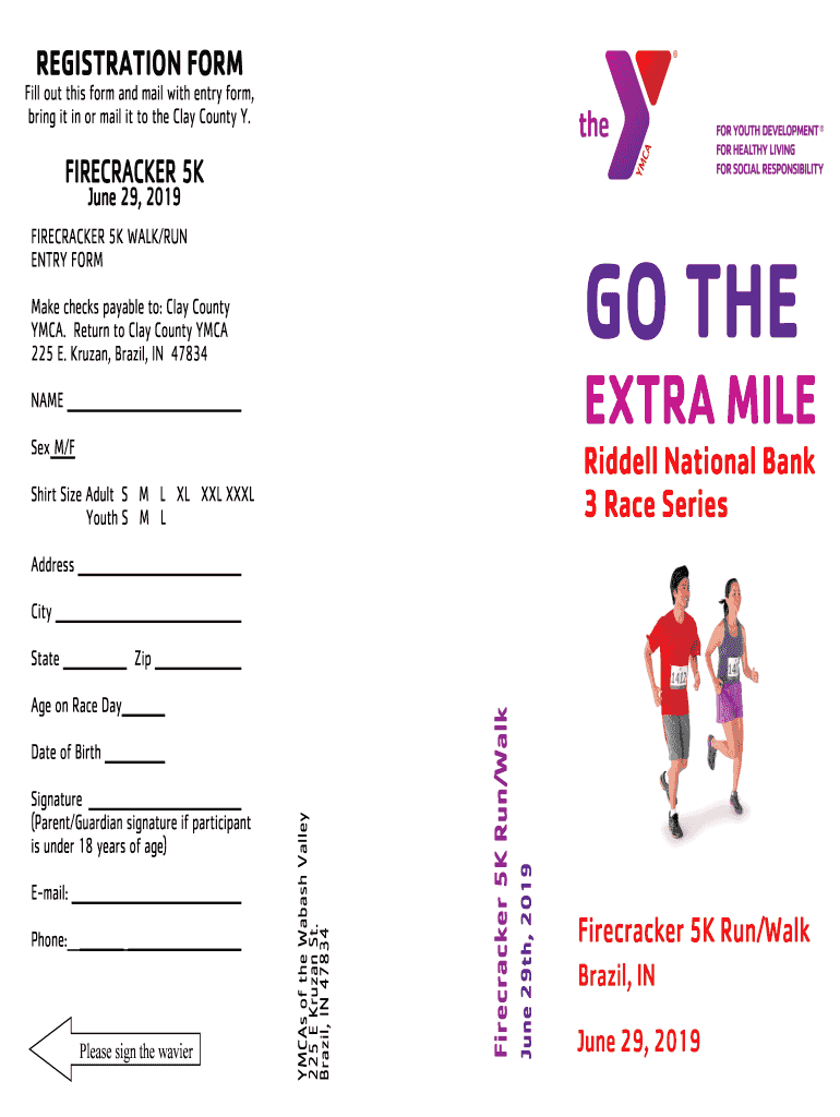 REGISTRATION Formerly out this form and mail with entry form, bring it in or mail it to the Clay County Y.FIRECRACKER 5K June 29, 2019FIRECRACKER 5K WALK/RUN ENTRY FORGO Theme checks payable to: Clay