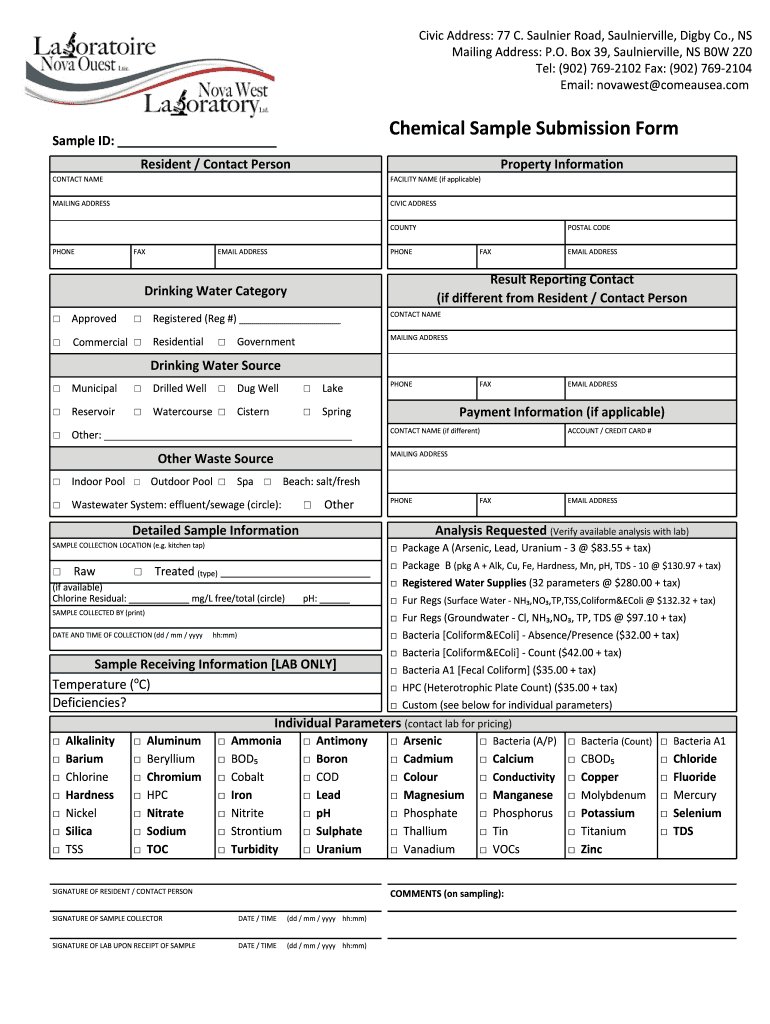 Civic Address: 77 C. Saltier Road, Saulnierville, Dig by Co., NS Mailing Address: P.O. Box 39, Saulnierville, NS B0W 2Z0 Tel: (902) 7692102 Fax: (902) 7692104 Email: nova west compasses. Chemical
