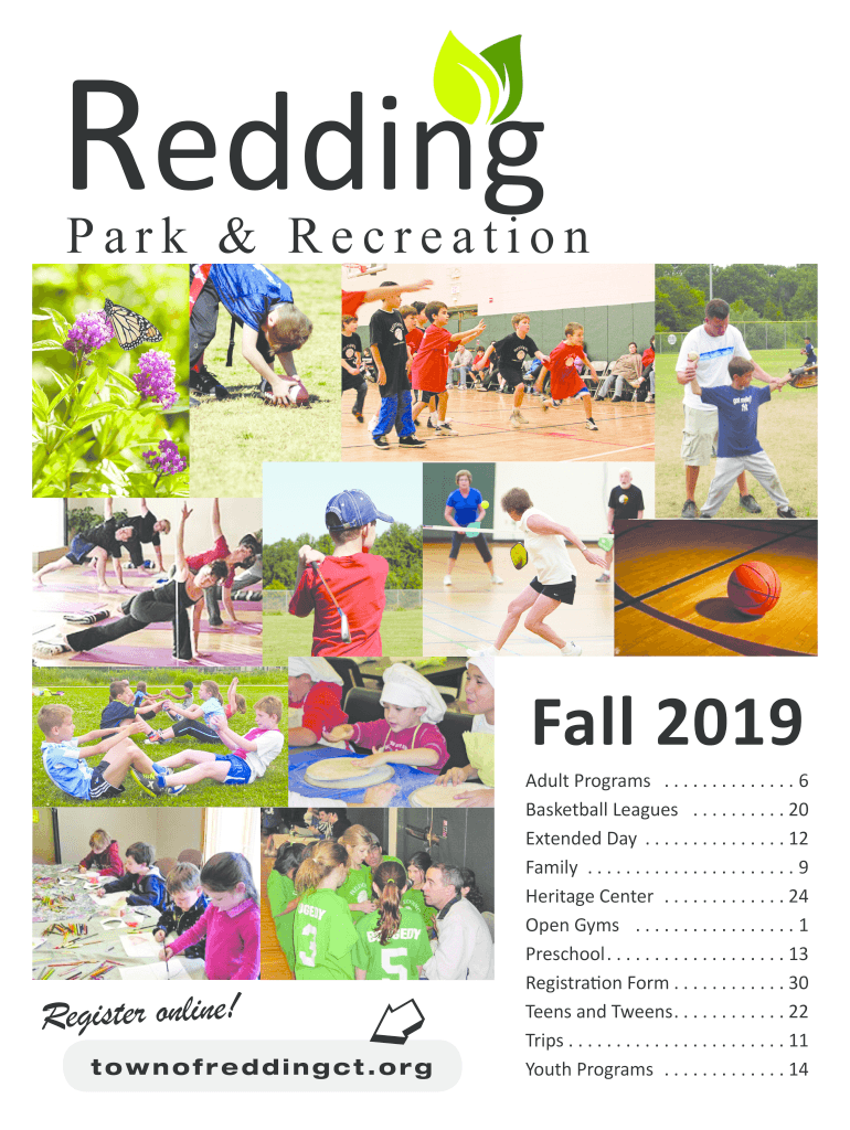 Redding Park & Recreational 2019Register online! Townofreddingct.adult Programs. . . . . . . . . . . . . . . 6 Basketball Leagues. . . . . . . . . . 20 Extended Day. . . . . . . . . . . . . . 12 Family.