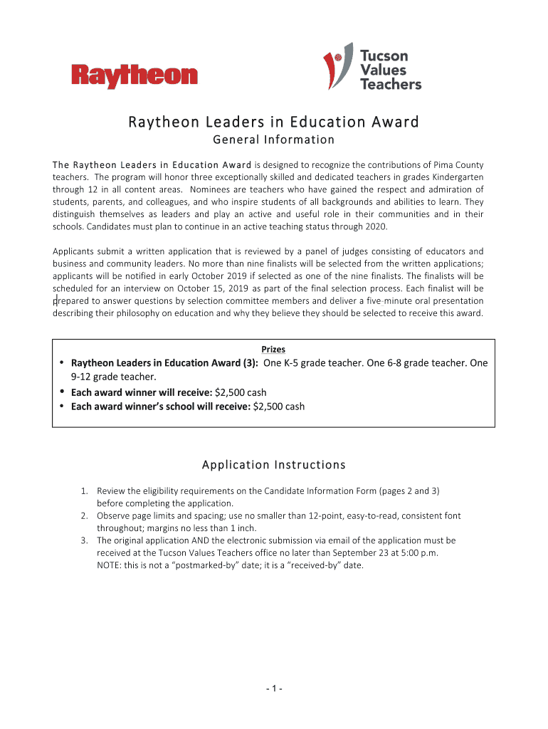 Get the free Raytheon Leaders in Education Award 2019 -- Candidate Application Form FINAL .docx