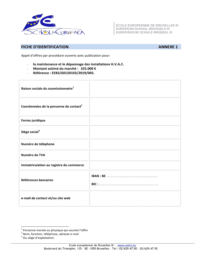 COLE EUROPEAN DE BELLES III EUROPEAN SCHOOL BRUSSELS III EUROPISCHE SCHULZ BESSEL EDIFICE DIDENTIFICATIONANNEXE 1Appel doff res par procedure obverse Alec publication pour:la maintenance et LE drainage