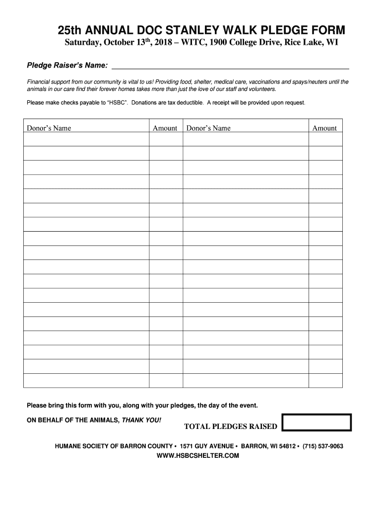 Get the free 25th ANNUAL DOC STANLEY WALK PLEDGE FORM