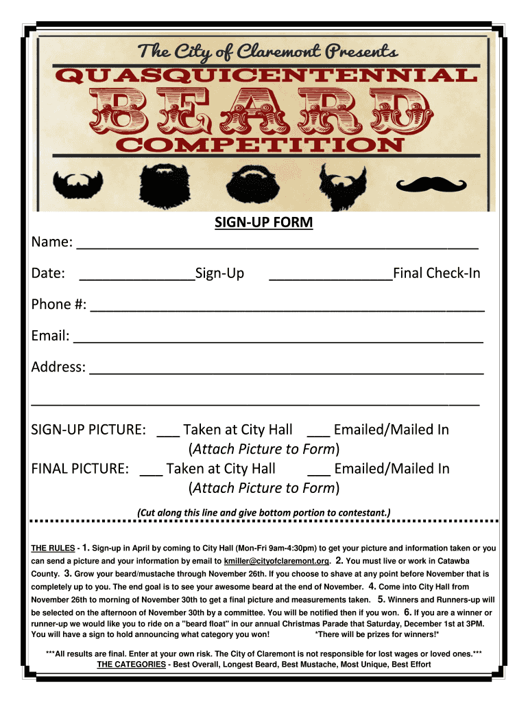 SIGN UP FORM Name: Date: Sign-up Final CheckInPhone #: Email: Address: SIGN UP PICTURE: Taken at City Hall Emailed/Mailed In (Attach Picture to Form) FINAL PICTURE: Taken at City Hall Emailed/Mailed