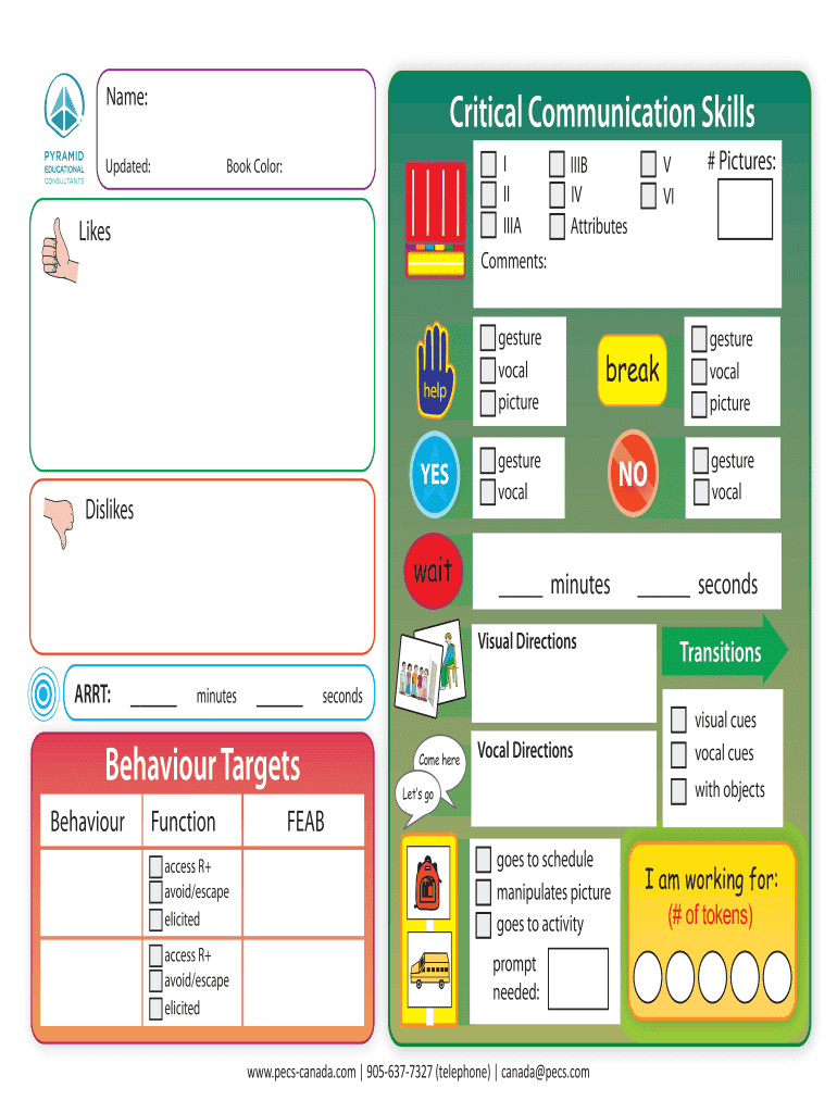 Name:Critical Communication SkillsUpdated:I II ILIA Comments:Book Color:Likely Dislikes wait minutes break gesture vocal picture gesture vocalNOgesture vocal minutesFunction access R+ avoid/escape